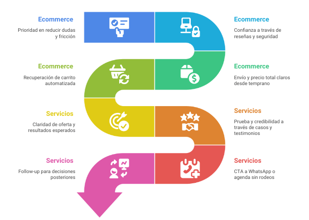 Aquí ocurre (o no ocurre) el avance: landing, página de producto, checkout, WhatsApp o agenda.